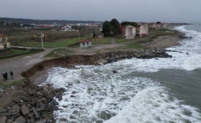 Sakarya'nın Karasu ilçesi Karasu Mahallesi Küçükboğaz mevkiinde olumsuz hava şartları ve şiddetli dalgalar sonucu meydana gelen kıyı erozyonu, bölgedeki bir arsanın istinat duvarının yıkılmasına neden oldu.