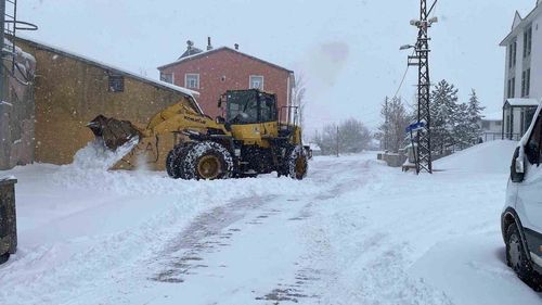 Bingöl'ün Karlıova ilçesinde kar yağışı etkili oldu; kar kalınlığı 25 santimi geçerken belediye iş makineleriyle cadde ve sokaklarda temizleme çalışması başlattı.