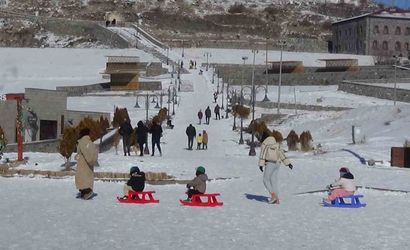 Miraç Tarla ise, "Kars Kalesi’nin altına geldik muhteşem bir kar manzarası var. Biz de kızaklarımızın tadını çıkarmaya çalışıyoruz" diye konuştu.