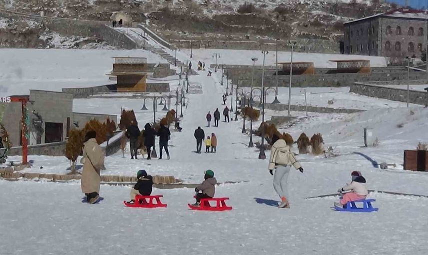 Hava sıcaklığının sıfırın altında 15 derece seyrettiği kentte, gün boyu devam eden eğlence akşam saatlerine kadar sürdü. Kristal kar kalitesiyle bilinen Kars’ta, kalenin dik yokuşlarını doğal bir kayak pistine çeviren gençler, kızak ve ellerine geçirdikleri çeşitli malzemelerle kayarak hızla aşağı süzüldü. Kayarken dengesini kaybedip düşenlerin neşesi ise kameralara yansıdı.