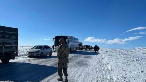 Kars'ta eksi 30 dereceye düşen soğuklarda Susuz mevkiindeki yoğun buzlanma nedeniyle Kars-Ardahan karayolunda yaklaşık yüz araç mahsur kaldı.