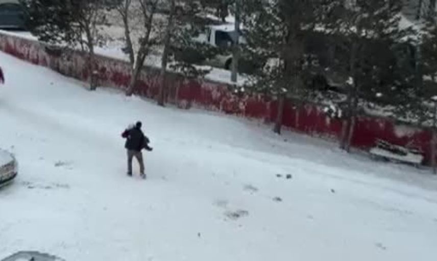 Kars'ta vefa dolu anlar kamerada: Annesini kucağında taşıdı