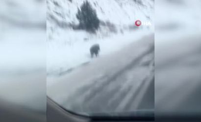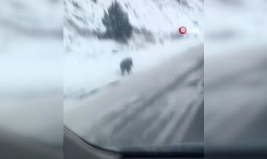 Kars'ta kar yağışının ardından yiyecek bulmakta zorlanan bir yaban domuzu, Kars-Ardahan-Göle-Balçeşme karayolu kenarına kadar inerek kara yolunda görüldü. Bölgedeki ağır kış şartları, yabani hayvanları yerleşimlere ve yollara yaklaştırdı.