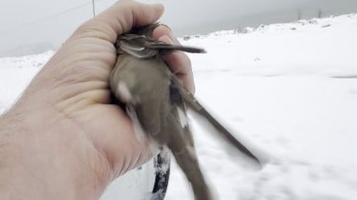 Kastamonu Çatalzeytin'de Tamer Çetin, yol kenarında donmak üzere bulduğu kuşu aracına alıp ısıttı; toparlanan kuş daha sonra doğaya salındı.