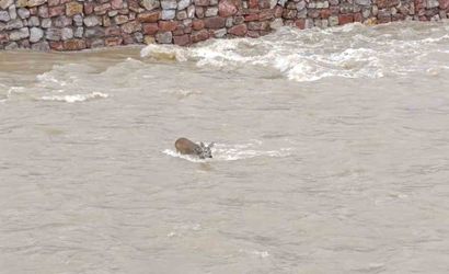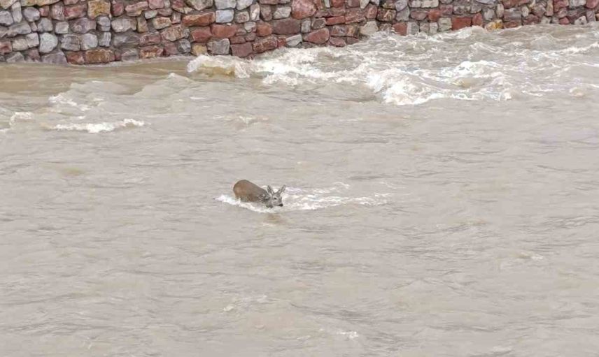 Kastamonu'nun Cide ilçesi İlyasbey köyünde meydana gelen olayda, çaya düşen bir karaca suyun etkisiyle sürüklenmeye başladı.