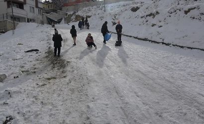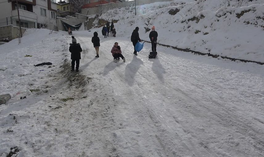 Zeynep Yalçın da, "Arkadaşlarımızla birlikte kayıyoruz, eğlenceli oluyor. Herkes sokaklarda oynuyor. Kardan adam yapıyoruz, güzel oluyor. Hava soğuk ama yine de eğleniyoruz. Okullarımız da tatil oldu, mutlu olduk" şeklinde konuştu.