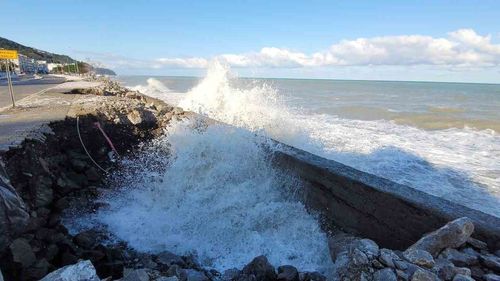 Kastamonu İnebolu'da kar sonrası etkili rüzgarın oluşturduğu dev dalgalar sahil kaldırımlarında hasara ve bazı noktalarda göçüklere yol açtı.
