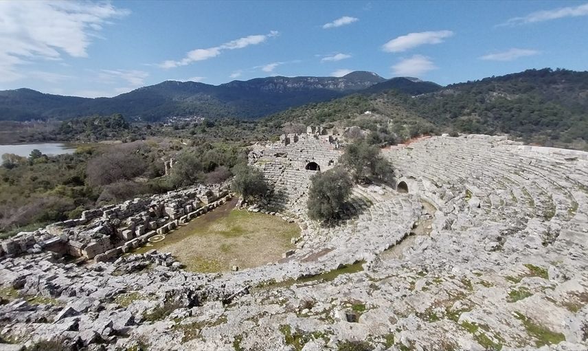Muğla'nın Köyceğiz ilçesindeki tarihle doğanın iç içe olduğu 3 bin yıllık Kaunos Antik Kenti, kış mevsiminde de ziyaretçilerine güzel görüntüler sunuyor.