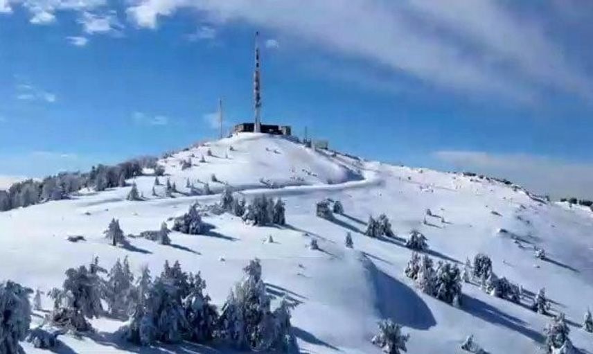 1892 metre rakımlı Göktepe Dağı’nın zirvesi, çam ağaçlarının üzerini örten kar tabakası ve verici istasyonlarıyla dikkat çekti. Havadan çekilen drone görüntülerinde dağın eteklerinden zirvesine kadar uzanan beyaz örtü ve sis bulutlarının oluşturduğu uyum izleyenleri etkiledi.