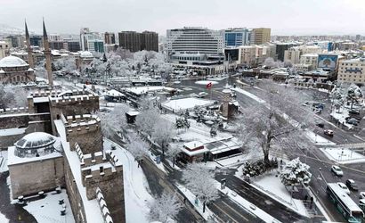 Roma, Bizans, Anadolu Selçuklu ve Osmanlı döneminde yaptırılan eserlerin yer aldığı Cumhuriyet Meydanı, havadan görüntülendi. Şehirde oluşan beyaz örtü, ortaya kartpostallık kareler çıkardı.