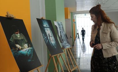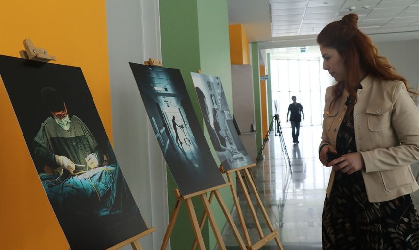 Kayseri Şehir Hastanesi'nde, sağlık çalışanlarının meslektaşlarını görev başındayken çektiği fotoğraflardan oluşan bir sergi açıldı. Fizik tedavi binasında açılan 25 fotoğrafın yer aldığı sergiyi hem hastane çalışanları hem de hastalar gezdi.
