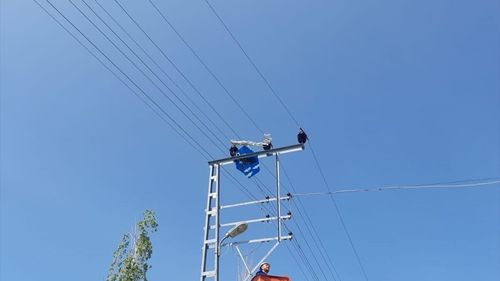 Kayseri'de KCETAŞ ekipleri, elektrik tellerine takılan uçurtmaları kurtararak çocuklara yardım etti.