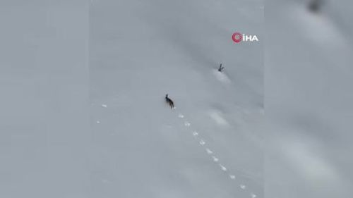 Karabük'ün 2 bin rakımlı Keltepe Kayak Merkezi'nde kar üzerinde koşan yaban tavşanı cep telefonu kamerasına yansıdı.