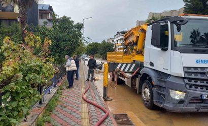 Kemer Belediye Başkanı Necati Topaloğlu de sahadaki çalışmaları yerinde inceledi. Başkan Topaloğlu, 'Kemer’de yaşanan sağanak yağmur nedeniyle mağdur olan vatandaşlarımızın imdadına koşmak için elimizden geleni yapıyoruz. Su basan ev, işyeri ve bazı otellerdeki suyun tahliyesini hızlı bir şekilde sağlamaya çalışıyoruz. Yarın da şiddetli sağanak uyarısı var. Gerekmedikçe vatandaşlarımızın sokağa çıkmamalarını istiyoruz. Belediye ekiplerimiz gece gündüz sahada çalışıyor' dedi.