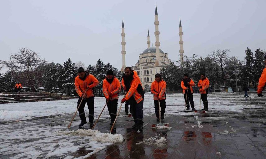 Kırıkkale Belediyesi ekipleri, kentte etkisini artıran kar yağışının ardından kaldırımdaki biriken karları temizleyerek yaya ulaşımının güvenli şekilde sürmesini sağlıyor.