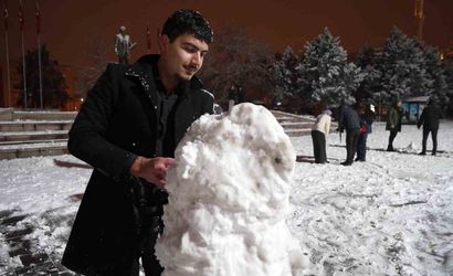 Kent merkezindeki meydanlar kar manzarasıyla canlandı. Gençler kar topu oynayıp hatıra fotoğrafı çektirirken, vatandaşlar da karda yürüyüş yapmanın keyfini çıkardı.