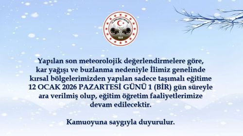 Kırklareli Valiliği, kar ve buzlanma riskine bağlı olarak kırsal bölge taşımalı eğitimine 12 Ocak 2026 Pazartesi günü 1 gün süreyle ara verildiğini duyurdu.