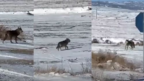 Kırşehir'in Çiçekdağı'nda kar nedeniyle yiyecek bulamayan iki kurt, şehir merkezine yakın bir noktada görüldü; yetkililer akşam ve gece için uyardı.