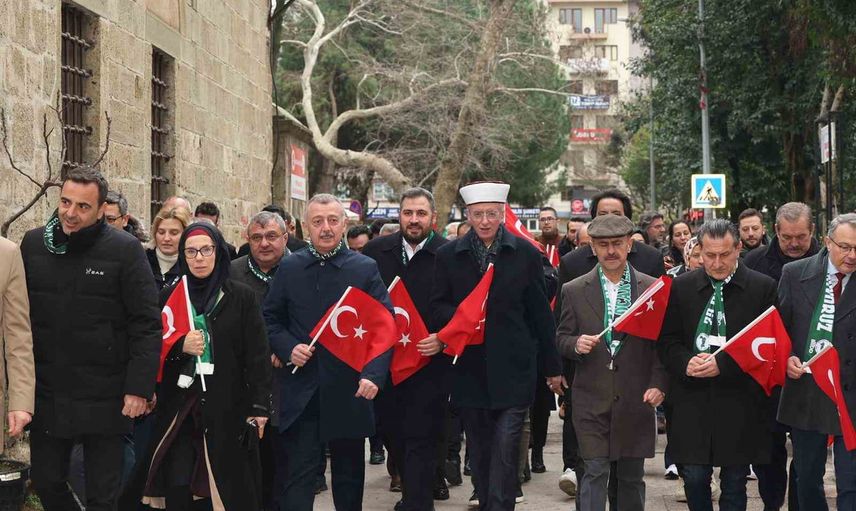 Konuşmaların ardından protokol ve katılımcılar ellerinde Türk bayraklarıyla Antikkapı-Cumhuriyet Bulvarı güzergahında yürüdü. Yürüyüş, Fevziye Cami yanındaki Milli Kimlik ve Direniş Anıtında sona erdi. Güzergah boyunca vatandaşlar alkışlarla yürüyüşe destek verdi; anıta karanfil bırakıldı ve dualar okundu.