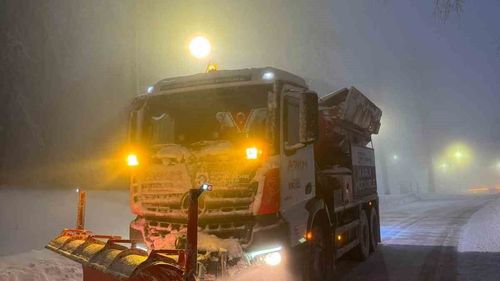 Kocaeli’de belediye ekipleri, ana arterler, köprüler, hastane girişleri ve durak önlerinde kar küreme ve tuzlama çalışması yapıyor.