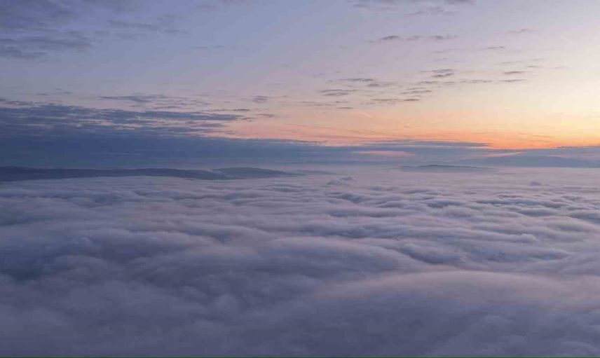 Yoğun sis manzarası, dron ve havadan çekimlerle de kaydedilerek kentin farklı noktalarına yayılan beyaz örtünün etkileyici panoramasını gözler önüne serdi.