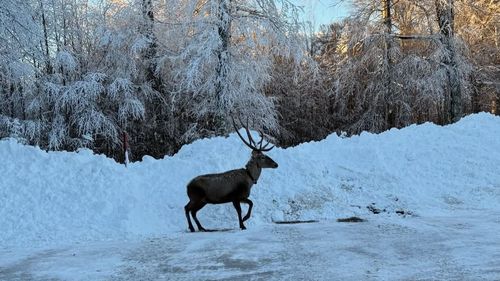 Ormanya’dan salınan kızıl geyikler, karla kaplı Kartepe ve Kuzuyayla Tabiat Parkı’nda görüntülendi; projede 19 Eylül 2024’te 10, bu yıl 15 geyik salındı.