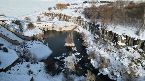 Van'ın Erciş ilçesindeki Koçköprü Kanyonu'nda metrelerce boydaki buz sarkıtları, doğa ve fotoğraf tutkunlarına görsel şölen sunuyor.