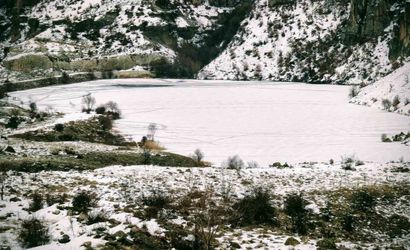 Bin 515 rakımda ve Erenkaya kanyonu içinde bulunan göletin çevresi, 15 santimetre kalınlığında kar tabakasıyla kaplandı.