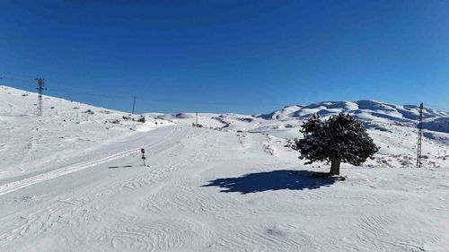Torosların 1500 metre rakımdaki Hadim ilçesinde etkili kar yağışı, kiraz bahçelerini örttü; üreticiler bereket umudu duydu, karla mücadele çalışmaları sürüyor.