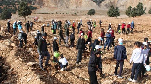 Korkuteli'de ÇEDES kapsamında 3 bin kızılçam ve ardıç fidanı, öğrenciler ve kurum personeliyle toprakla buluştu; çevre bilinci ve doğa sevgisi hedeflendi.