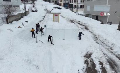 Kızılelma köyünde çocuklar için yapılan kardan çalışmalar ilgi çekiyor