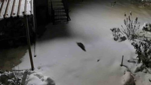 Kulp'ta üç gün süren kar yağışının ardından aç kalan kaya sansarı, Hamzalı Mahallesi Çöl mezrasında güvenlik kamerasına yansıdı.