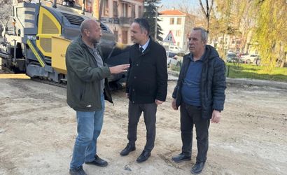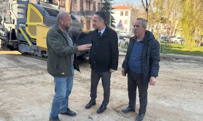 Kütahya Belediye Başkan Yardımcısı Osman Ortaçlı, Fen İşleri Müdürü Ali Taşkın ve Saray Mahallesi Muhtarı Necati Şahin, Saray Mahallesi'nde devam eden asfalt çalışmalarını inceledi.