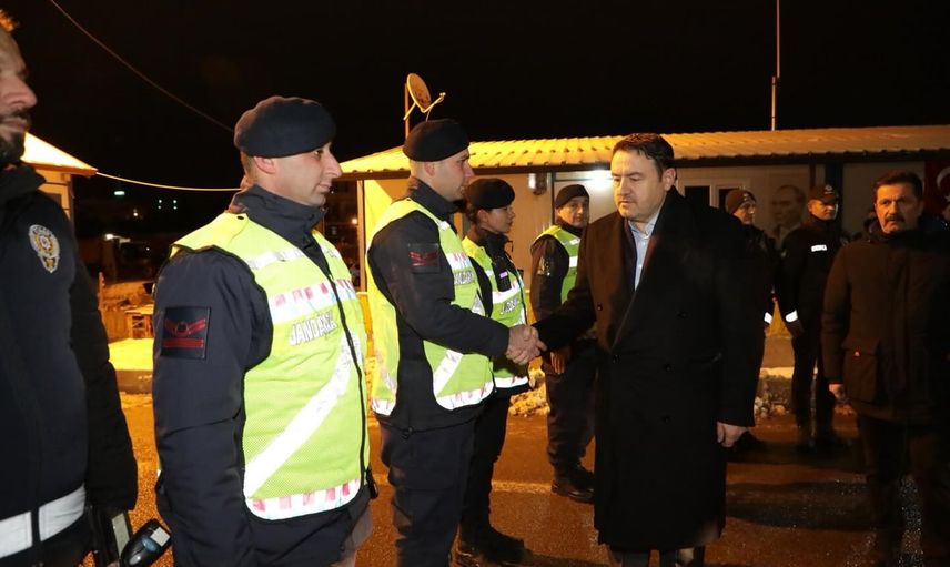 Eskişehir Yolu üzerinde bulunan PTS Kontrol Noktasında görevli emniyet ve jandarma personeliyle de görüşen Vali Işın, yürütülen çalışmalardan dolayı teşekkür etti ve personelin yeni yılını tebrik etti.