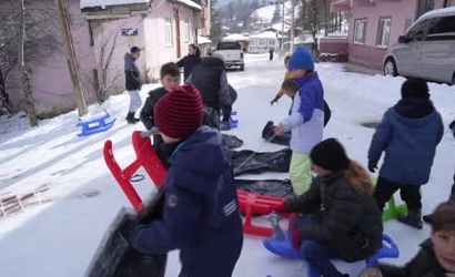 Yoğun kar yağışının ardından ortaya çıkan renkli görüntüler, çocukların neşeli anlarına sahne oldu. Kızakla kayan çocukların eğlenceli anları kameralara yansırken, mahalledeki büyükler de bu keyifli anları izleyerek çocuklara eşlik etti.