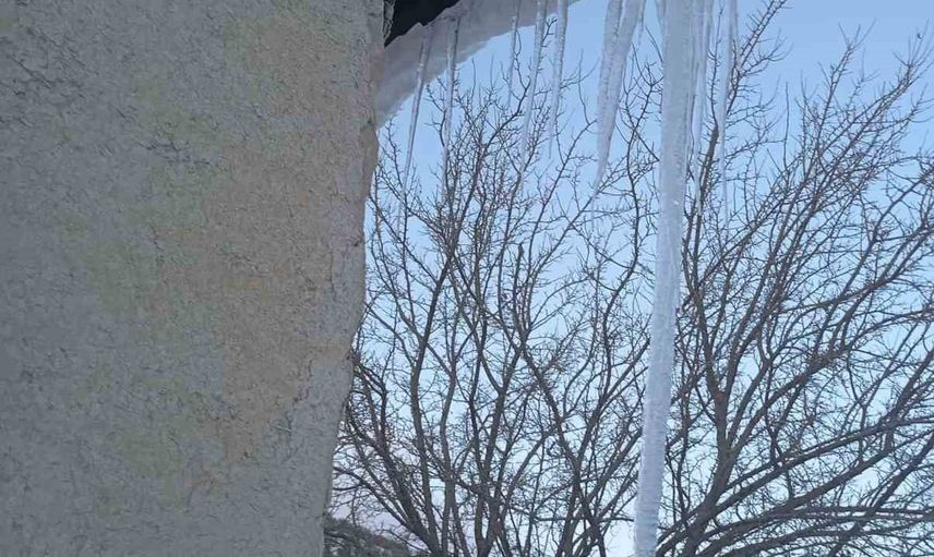 Son yılların en sert kışında çatılarda dev buz sarkıtları