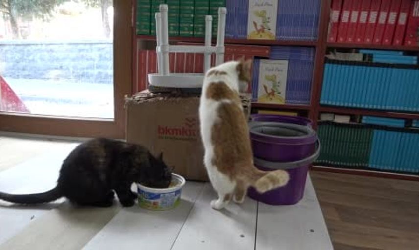 Malatya'da konteynerde sahaf, sokak kedilerine umut oldu