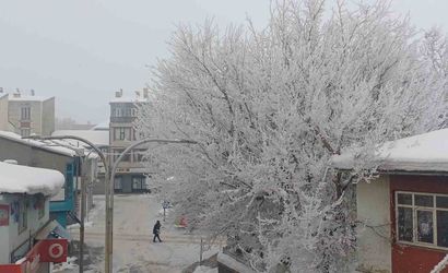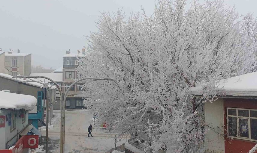 Gece saatlerinde hava sıcaklığının sıfırın altına düşmesiyle ağaçlar, bitkiler, çatı saçakları ve açık alanlar kırağıyla kaplandı. Ortaya çıkan tablonun ilçeyi beyaza bürüdüğü görüldü.