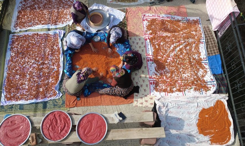 İlçeye bağlı Akdere Mahallesi kadınları, kış mevsiminin yaklaşmasıyla imece geleneğini sürdürerek kışlık yiyeceklerini hazırlamaya başlıyor.