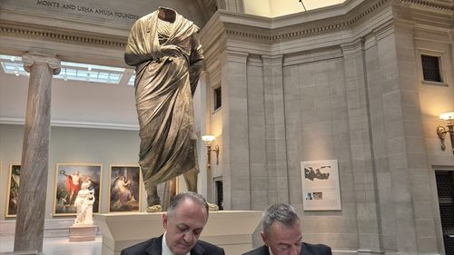 1960'lı yıllarda kaçırılan Marcus Aurelius heykeli, ABD'deki törenle Türkiye'ye iade edildi.