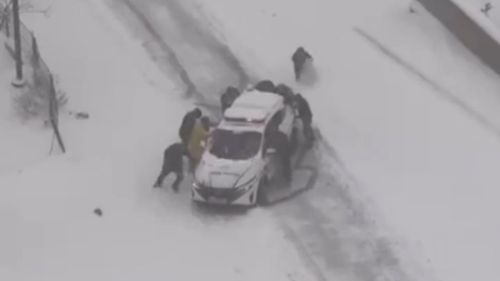 Mardin'de yoğun kar altında polis ve vatandaşlar, Vali Tuncay Akkoyun koordinasyonunda yürütülen çalışmalarda mahsur kalan araçları birlikte kurtardı.