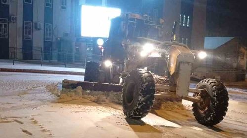 Gece yarısından sonra etkisini artıran kar yağışı sonrası Mardin Büyükşehir Belediyesi ekipleri ana arterlerde küreme, tuzlama ve solüsyon çalışması yaparak yolları açık tuttu.