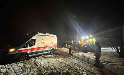 Mardin’in Artuklu ilçesinde, vakaya giden ambulans yoğun kar yağışı nedeniyle yolda mahsur kaldı. Hamzabey Mahallesi'nde yaşanan olayda ambulans, belediye ekiplerinin çalışmasıyla bulunduğu yerden çıkarıldı.