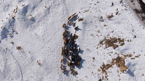 Mardin Mazıdağı'nda etkili kar yağışı, besicileri zorlu mesaiye itti; çobanlar karla kaplı arazilerde sürülerini otlatıp ağıllara götürüyor.