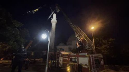 Marmaris'te Fırtına Minare Külahını Yerinden Oynattı — Söküm Başladı