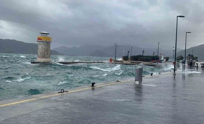 MARMARİS’TE ŞİDDETLİ RÜZGAR DENİZİ TAŞIRDI