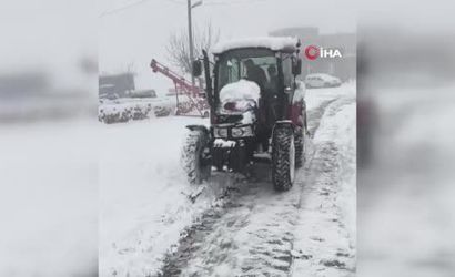 Traktörlere takılan aparatlarla yapılan kar temizleme çalışmasında komşularının ve köylerinin ulaşımı için dondurucu soğukta saatlerce mesai harcandı. Halkın dayanışma gösterdiği o anlar kameralara yansıdı.