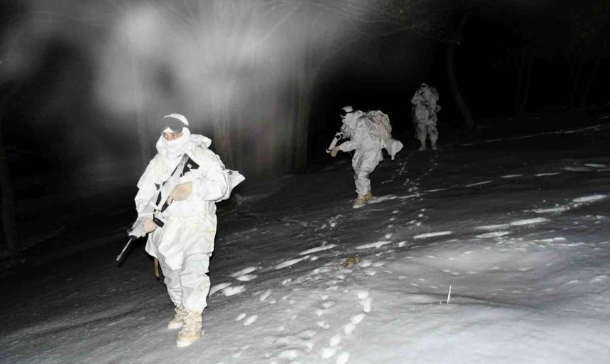 Mehmetçik'in karlı arazide gece eğitimi