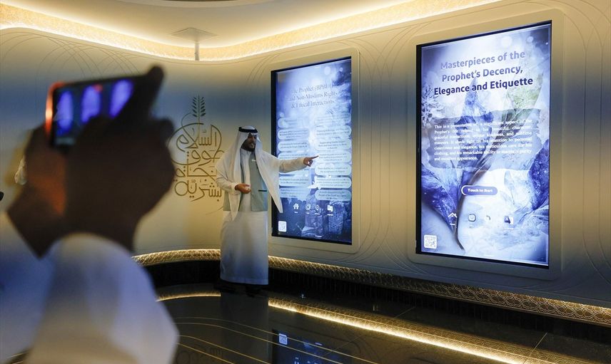 Basın mensupları, saat kulesindeki Uluslararası Peygamber Biyografi Müzesini gezerek, Hz. Peygamber'in hayatı, ahlakı ve İslam hukuku gibi önemli konuları dijital ekranlardan detaylı olarak inceledi.