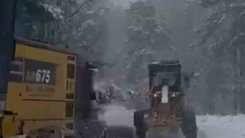 Bolu'nun Mengen ilçesinde gece başlayan kar yağışı sonrası İlçe Özel İdaresi ekipleri, köy yollarında kar küreme ve yol genişletme çalışmalarına başladı.